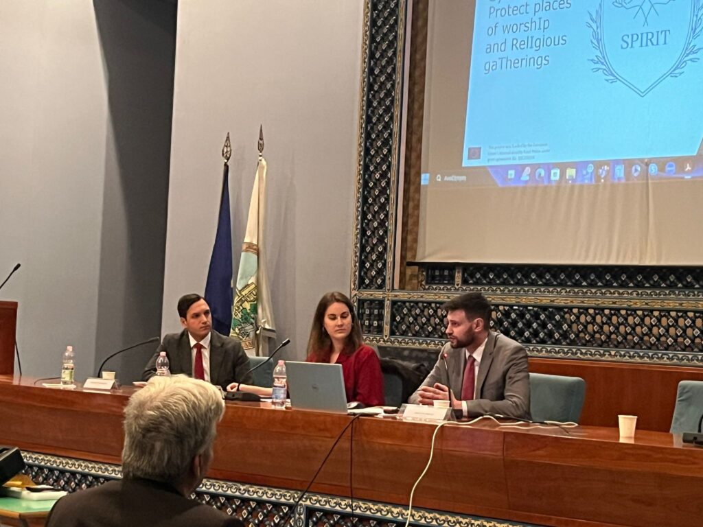 Il workshop si è articolato in varie sessione tematiche. Il panel sulle analisi delle vulnerabilità è stato aperto da Nikolaos Lalazisis di KEMEA, in qualità di manager coordinatore del progetto Spirit. Il panel ha beneficiato degli interventi di Federico Benolli, del progetto SHRINEs, e di Niklas Hamann, del progetto SHIELD. Le loro presentazioni hanno arricchito il dibattito, offrendo contributi significativi riguardo le metodologie più efficaci sulla tutela e sulla sicurezza dei luoghi di culto.